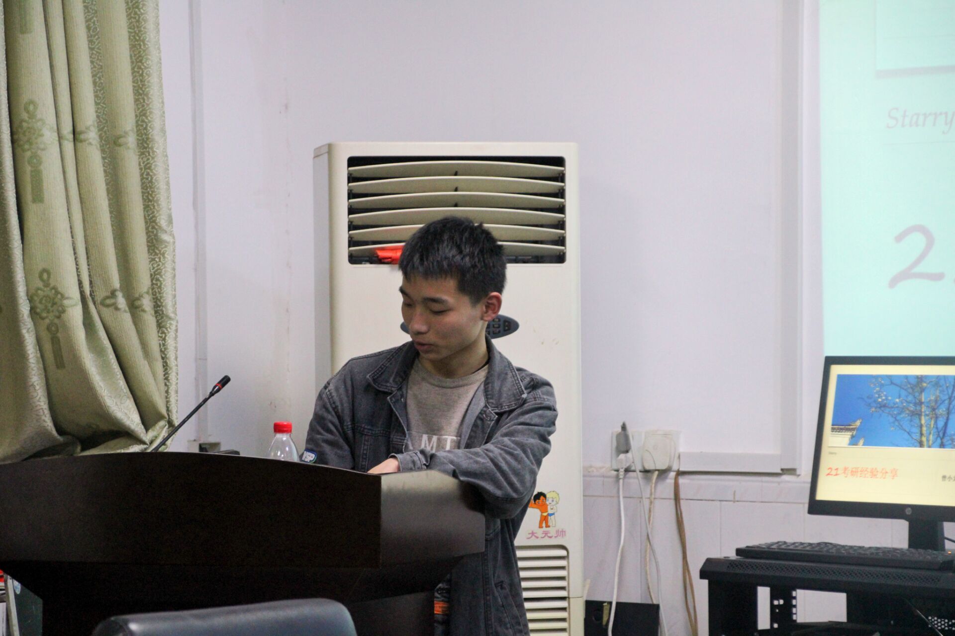 会议伊始,曾小龙进行了自我介绍,让在场的同学对他有个简单的了解。首先他就为什么要考研及如何考研等问题做出了详细讲解。曾小龙认为:考研一方面是为了就业,另一方面是为了让自己能够拥有第二次选择高校的权力。对于如何考研,曾小龙分别从专业、学习科目、学习计划、学校选择、心态等几方面分析。他表示发展第第一,兴趣第二;学习科目方面,重在练习,多动脑,勤动手,尤其是英语必须重视;学习计划方面,考研学习要分为三轮,每天都要安排时间计划着学习,同时强调注意休息,身体是革命的本钱;在学校的选择上,一定要适当选择优秀的学校;最后,曾小龙着重强调心态问题,他表示有一个良好的心态很重要,在12月份考研的同学们心情都会有一个低落期,一定要坚持到最后,调整好自己的心态。最后,曾小龙向同学们分享了面试中的相关技巧,使同学们对这一方面的知识有了进一步的了解。