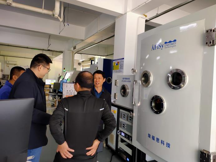 在实验室,公司副总兼研发主管王晓峰博士和陶尚经理向老师们展示了公司最新的研发成果:精密光学离子束抛光机等,就产品的性能参数、制备工艺及应用前景等方面作详细介绍,双方对研究方向进行了探讨。此外,老师们还深入了解学习了企业在精密光学磁流变抛光机和精密光学数控小磨头抛光机等方面的技术创新,对企业在光电领域的技术实力和市场影响有了更深入的认识。