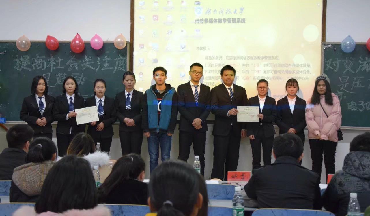 在主持人介绍了到场嘉宾、评委以及两支参赛队伍后,比赛正式开始。在正方2018级物理三班、反方2018级电子四班辩论队自我介绍后,比赛进入了开篇理论环节。烽火由正方点燃。正方一辩有条不紊地阐明了本方“提高社会关注度对艾滋病患者更多是鼓励”的观点。反方不甘示弱,他们旁征引博,提出“提高社会关注度对艾滋病患者更多还是压力”的观点。接下来的盘问阶段和自由辩论更是扣人心弦,正反两方辩手们不失风度而又犀利的辩论将比赛推向了白热化。比赛结束后,数学学院2016级翁家宝同学对辩论赛进行了总结,他首先肯定了双方选手的精彩辩论,同时也指出了一些不足之处,并对选手们寄予厚望。最终,2018级物理三班获得获得冠军,2018级电子四班获得亚军,正方三辩夏芝蕙获得“最佳辩手”。颁奖仪式结束后,比赛圆满落幕。