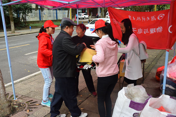 为了帮助贫困地区的家庭和孩子们度过寒冷的冬天,让他们感受到来自科大的温暖与爱心,10月29日,beat365青年志愿团与潇湘学院、生命科学学院学院等多个兄弟学院志愿团联合开展“情暖严冬,爱暖朝阳”旧衣物捐赠活动,并在南北校多地设点收集旧衣物。