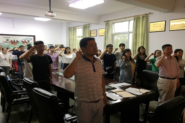 正值建党96周年到来之际,在领誓人的带领下新发展学生党员进行了庄严的宣誓,其他党员重温了入党誓词,将入党誓词再一次深深烙印在每一个党员心中。学生党员代表罗秀坤同志回顾了建党96周年来中国共产党的发展历程,以及强调了作为一名学生党员应注重提升自身综合素质和党性修养。最后,院党委书记周文革同志上台做重要讲话,讲话中对党员同志们提出了三点要求,分别是坚定自己的理想信念、高度自觉学习以及要主动提高自己的能力。还强调每一名党员都是一盏灯、一面旗,要始终起到先锋模范作用,为党的伟大事业奋斗终身。