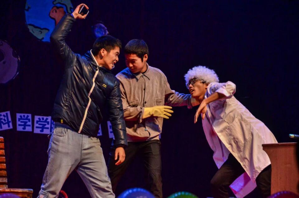 在观看完精心制作的新生特辑后,伴随着热舞《work》,晚会正式开始。由院舞蹈队带来的校园风舞蹈《微微一笑很倾城》,展现了当代大学生的青春魅力;《咏春魂》武术表演、OX leather乐队的歌曲串烧,点燃了现场的气氛!而接下来的《墨韵朗音、尽曲流觞》节目,风格一转,将朗诵、书法、古筝弹奏完美结合在一起,擦出别样的火花,给观众带来动听音乐的同时,也感受到了那抹浓浓的书香、静谧的古风!学生会主席团和17级助班们的《大咖T台秀》给观众们带来了一场视觉盛宴,让大家看到了他们工作之外的青春魅力。物院学子们施展才华,挥洒汗水,将一出又一出精彩的节目带给观众。晚会的最后,教官见面环节以及学生会部长们倾情出演的《科大版成都》,给晚会增添了些许柔情和暖意,为晚会画上了一个完美的句号。晚会还进行了抽奖和新生特长赛颁奖环节。