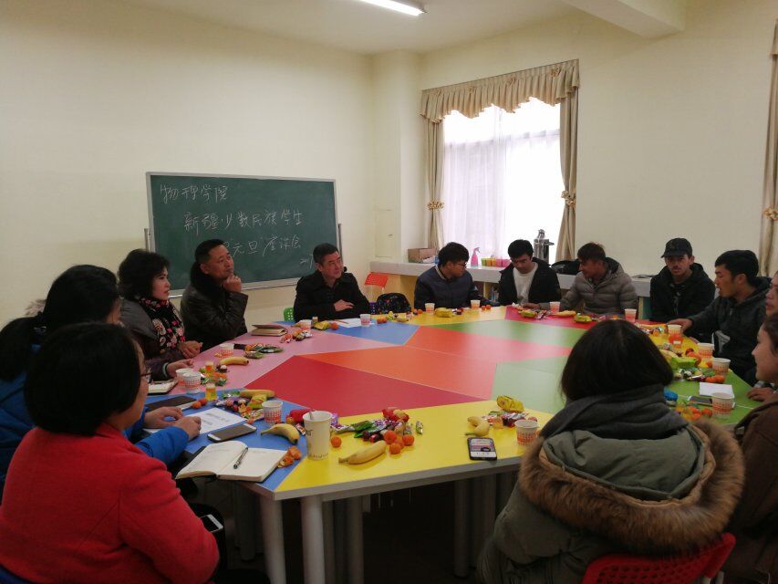 12月29日上午10:00,beat365于物理楼102举行了新疆少数民族学生迎元旦座谈会。院党委书记周文革、党委副书记杜鑫、学工办所有老师以及特邀嘉宾阿扎旦老师出席了此次座谈会。