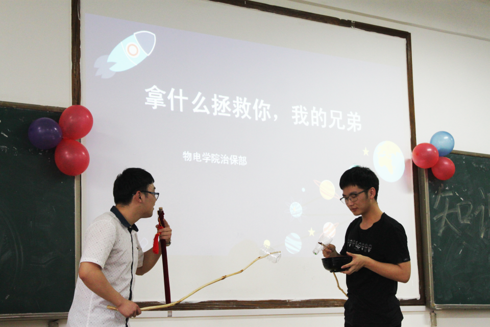 治保部刘源同学以反问的形式循循善诱,引导同学们思考生命的含义,拉开了本次活动的序幕。治保部给同学们带来了小品——《我拿什么拯救你,我的兄弟》,展现了一个被传销组织洗脑的人如何被他人成功拯救的故事。活灵活现的表演教同学们不要幻想天上会掉馅饼,要保持理智。表演过后,治保部郭纪祥从财务、人身、食品等方面带给大家的安全知识讲解,是本次大会的饕餮盛宴。他以实例、启示等方式将大家日常碰到的安全问题讲得深入浅出。校安全信息队二中队中队长周旺也通过列举典型案例的方式,指出大学生防盗意识淡薄、人身财产安全易受到威胁的现状,教育同学们要时刻保持警惕,并讲授了应对盗贼和不法分子的可行方法。